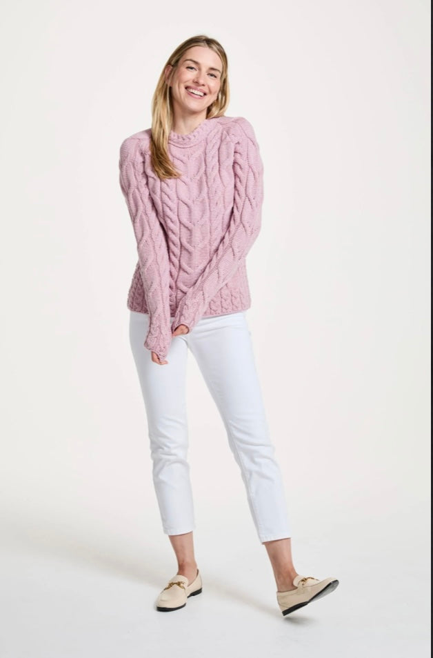 The L&H Aran Cabled Sweater is a true gem within the collection. This piece celebrates the cable stitch by showcasing numerous styles to include a chunky look, elongated cables and the ever-traditional trellis. Though this knit stays true to the Aran tradition, the neat raglan sleeve and gentle side fitting allows it to capture a beautiful silhouette and remain up to the minute with modern styling.