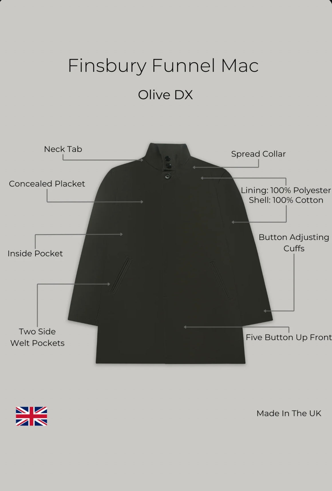 With a cotton shell and polyester lining, the Finsbury Funnel Mac is the ultimate mac for fashion and comfort, designed and manufactured in London, its neck tab and concealed plackets will keep you warm and dry, even in London rain.